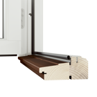 Elitfönster Retro Altanpardörr/Fönsterpardörr i sidhängd utåtgående modell finns i olika varianter; helglasad, glasad underdel eller med valfri bröstning.