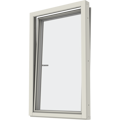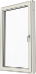 Inåtgående kopplat sidhängt fönster. Erbjuds även som flerluft och i kombinationer. Modellen kipp-dreh är utrustad med ett tvåfunktionsbeslag. När handtaget vrids till horisontellt läge infaller vädringsläget (Kipp). När handtaget vrids till vertikalt läge infaller sidhängd öppningsfunktion (Dreh).