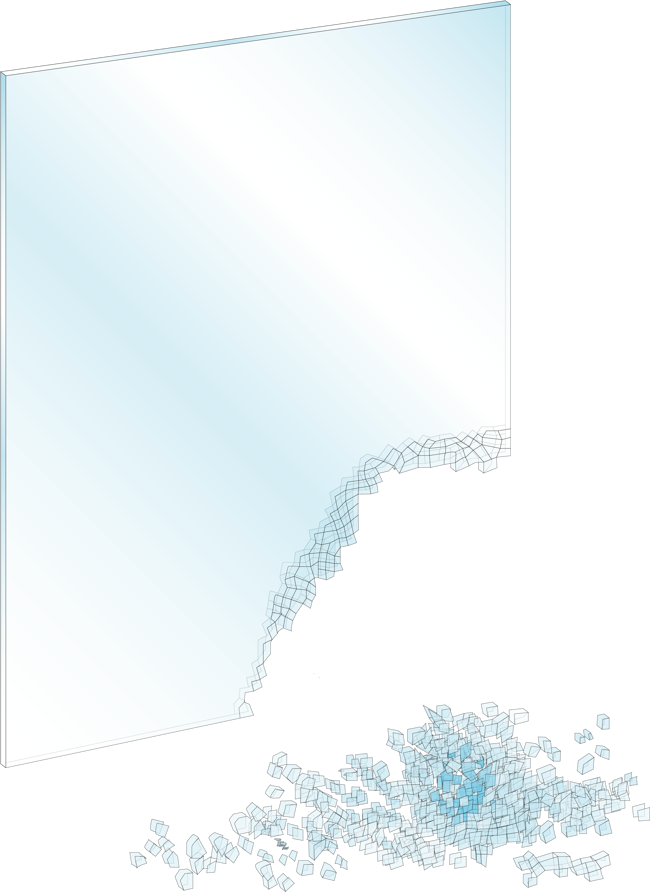 Ett härdat glas är 5 gånger starkare än ett vanligt glas som om det går sönder splittras i en mängd småbitar med rundade kanter för att skydda en människa mot skärskador.