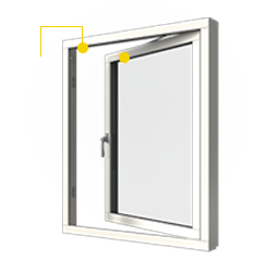 En magnetkontakt skapar möjligheter till indikering som visar om fönstret eller altandörren/fönsterdörren är öppen eller stängd genom att skicka signaler till larm eller kontrollstationer. Den indikerar inte ifall spanjoletten är i stängt läge. Magnetkontakten sitter i karm och båge, placering varierar beroende på vilket öppningssätt produkten har. Passar till samtliga fönsterfamiljer. Exemplet ovan visar placeringen på ett sidhängt utåtgående fönster.