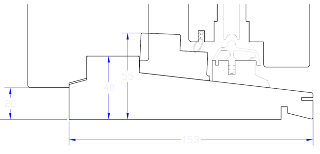 Skjutdörr Trä och Skjutdörr Alu erbjuds med två tröskelalternativ, här visas den högsta varianten. Tröskel i trä, höjd 55 mm.